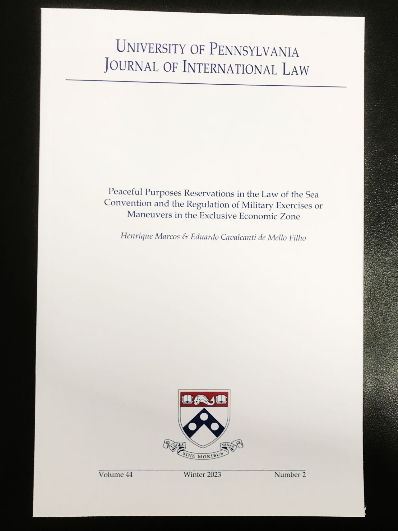 I am proud to share that my co-authored paper with Eduardo Cavalcanti de Mello Filho, “Peaceful Purposes Reservations in the Law of the Sea Convention and the Regulation of Military Exercises or Maneuvers in the Exclusive Economic Zone” published in the University of Pennsylvania Journal of International Law, has been cited by hashtag Ukraine before the Permanent Court of Arbitration (PCA) in their dispute on maritime rights against hashtag#Russia’s ongoing unlawful invasion.